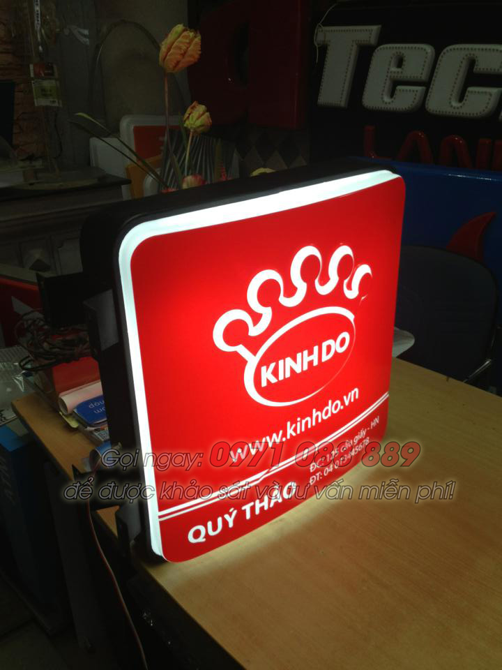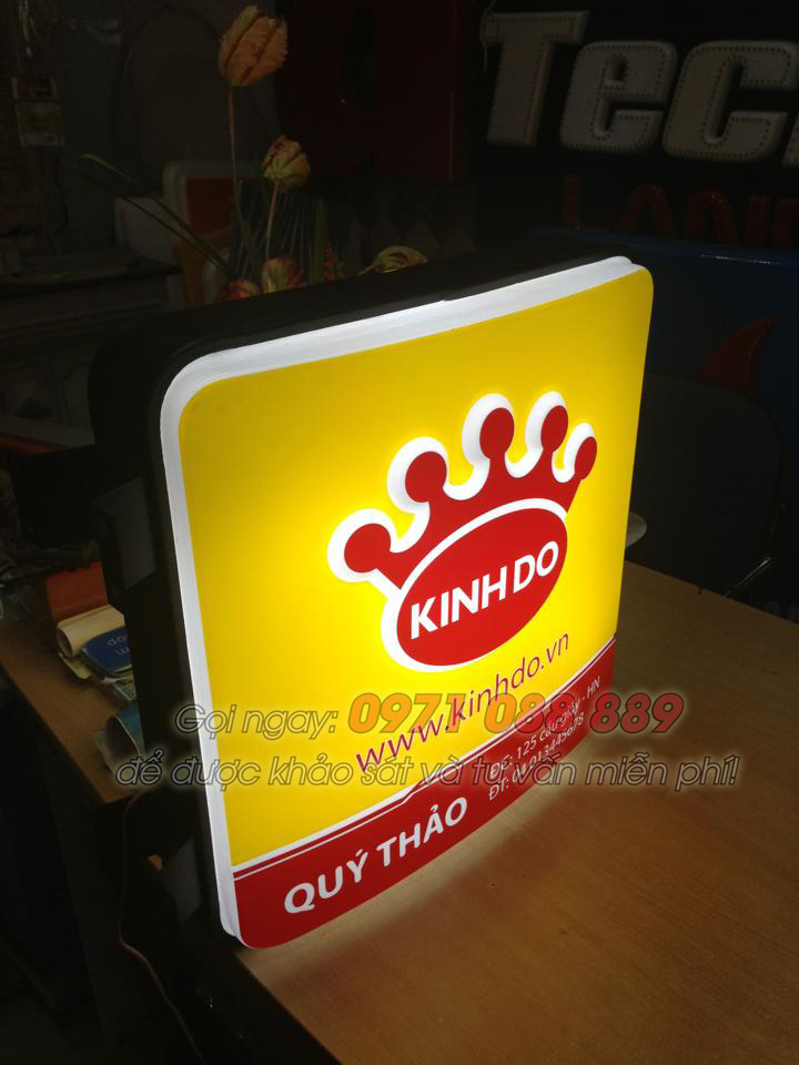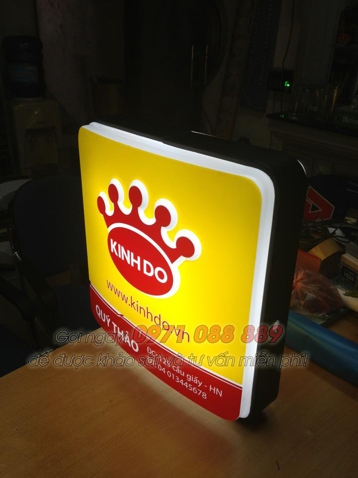Làm biển quảng cáo hộp đèn mica hút nổi cho Kinh Đô