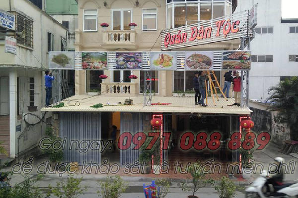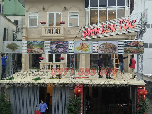 Biển quảng cáo hộp đèn siêu mỏng và chữ nổi " quán dân tộc" bằng mica cho quán ăn tại Tây Hồ.