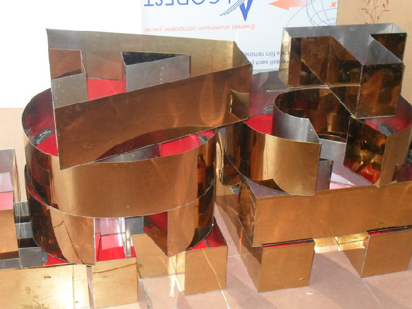 - Độ bền rất cao, ít bị cong vênh biến dạng bởi thay đổi nhiệt độ môi trường nên đồng thường được sử dụng cho các bộ chữ nổi có kích thước bất kỳ, kể cả trong nhà lẫn ngoài trời. Sau khi thi công xong phần chữ nhà sản xuất thường mài nhẵn bằng giấy ráp trước, sau đó phủ lên lớp mặt bằng lớp 2k tạo độ bóng.