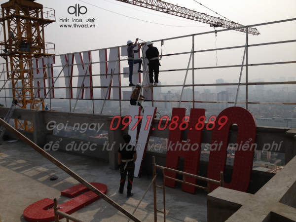 Thi công Bộ chữ quảng cáo trên nóc tòa nhà đòi hỏi đơn vị thi công phải có máy móc thiết bị hiện đại, đội ngũ kỹ thuật phải am hiểu về tính kết cấu, đội ngũ thi công phải có nhiều kinh nghiệm trong nghành thi công quảng cáo tòa nhà. Công ty quảng cáo Tinh Hoa Việt là đối tác làm biển quảng cáo cho các tòa nhà cao tầng trên địa bàn Hà Nội và các tỉnh lân cận. Chúng tôi đã thi công nhiều công trình bộ chữ tòa nhà lớn như Tòa nhà Thăng Long victory, Tòa nhà Đơn Nguyên, Tòa nhà Viettel Duy Tân, Tòa nhà Viettel Mỹ Đình, ... Với nhiều năm kinh nghiệm trong nghành quảng cáo, đội ngũ kỹ thuật tay nghề cáo cùng hệ thống máy móc hiện đại Tinh Hoa Việt đáp ứng mọi đòi hỏi thi công lắp đặt làm biển quảng cáo cho tòa nhà cao tầng, chung cư,...
