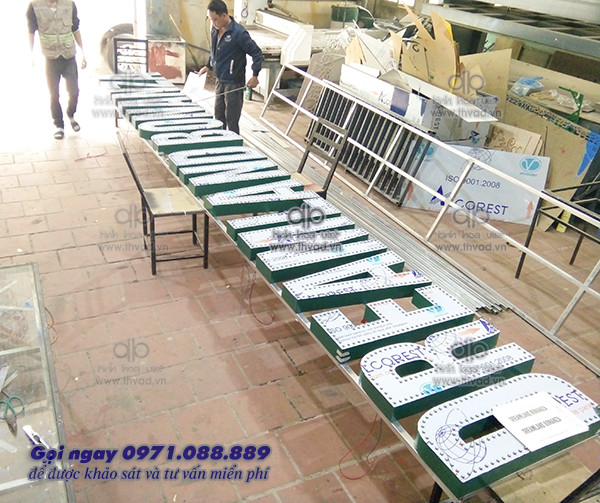 Công trình bộ chữ quảng cáo alu gắn led đã thi công: