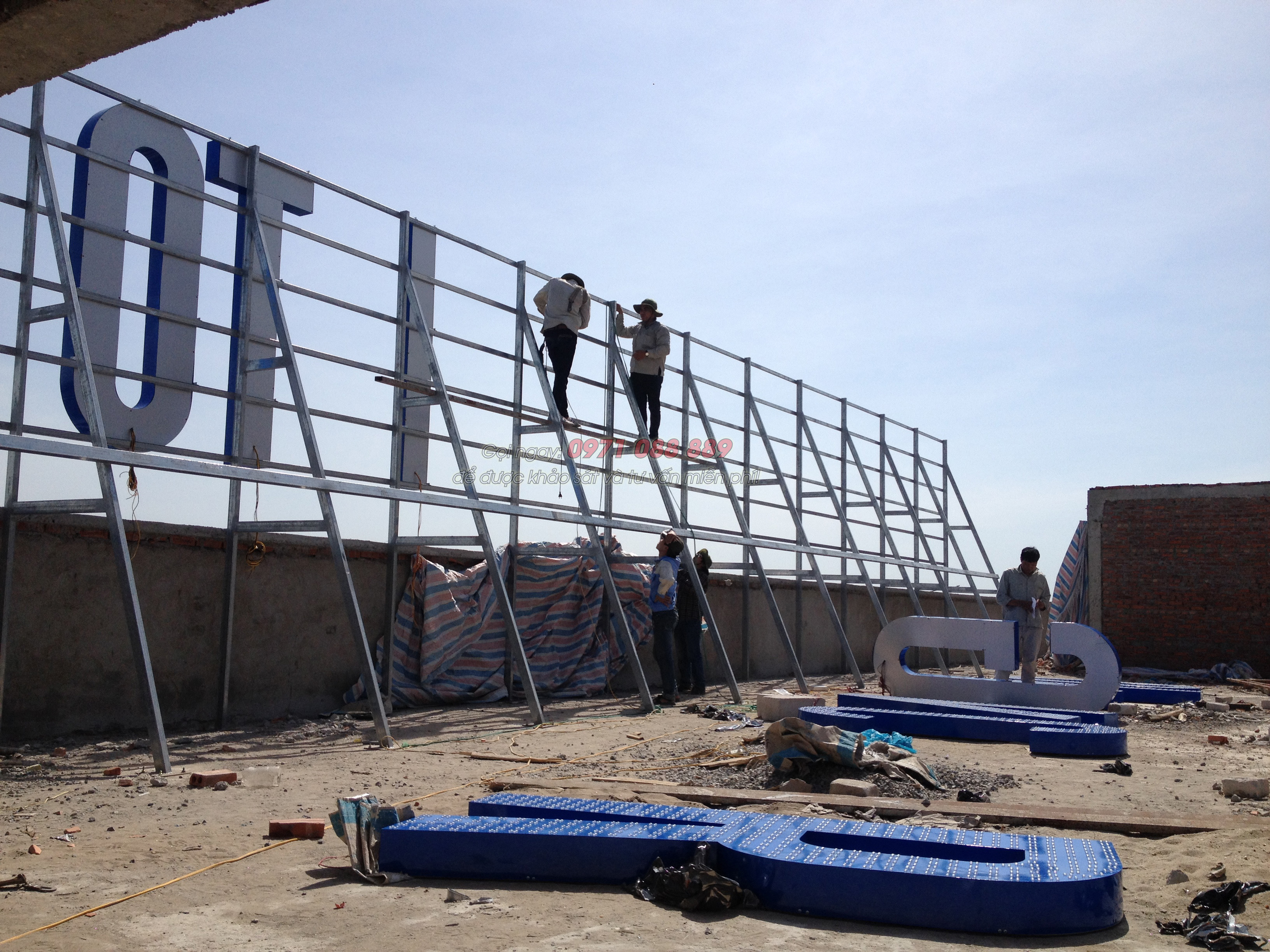Thi công lắp đặt biên quảng cáo trên nóc tòa nhà