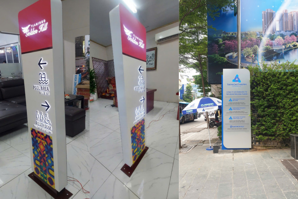 - Trong các tòa nhà, văn phòng, khách sạn, trung tâm thương mại, siêu thị thường đặt những biển quảng cáo để chỉ hướng cho khách hàng đi đến đúng vị trí cần tìm. Tiêu biểu như: Biển chỉ dẫn phòng, biển sơ đồ tầng, biển chỉ dẫn các phòng ban, biển chỉ dẫn toilet, …