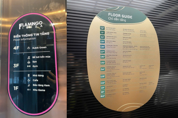 Thường được sử dụng vào trong các tòa nhà chung cư, trung tâm thương mại hay siêu thi cao cấp. Mặt biển chỉ dẫn thường được làm bằng Inox hoặc đồng.