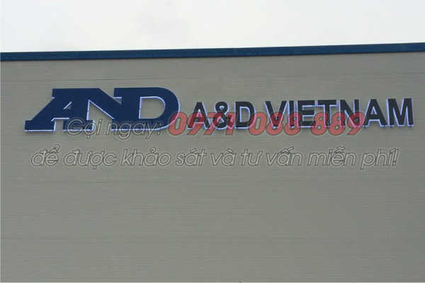 Thi công lắp đặt biển chữ nổi inox xước và inox sơn tĩnh điện cho công ty A&D việt Nam. Làm biển công ty tại Bắc Ninh.