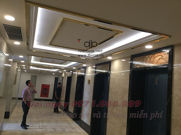Hệ thống biển quảng cáo bằng Inox Sus-304 cho dự án nhà ở chung cư cao cấp: Hoa văn sảnh, hoa văn thang máy, Logo dự án, đèn led + Kính che ngoài hoa văn, biển sơ...